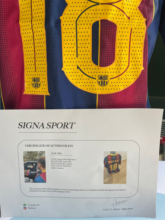 Gesigneerd Jordi Alba Barcelona 2020-2021 shirt met echtheidscertificaat